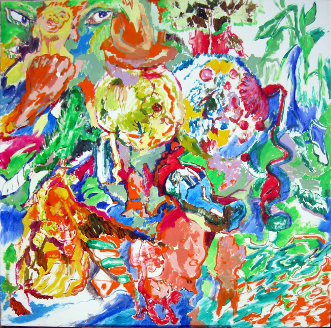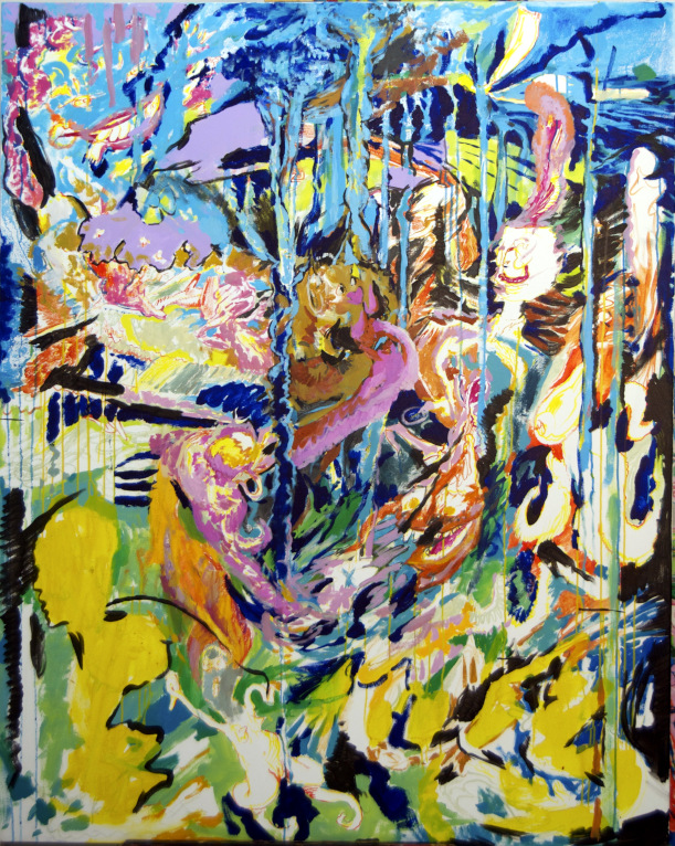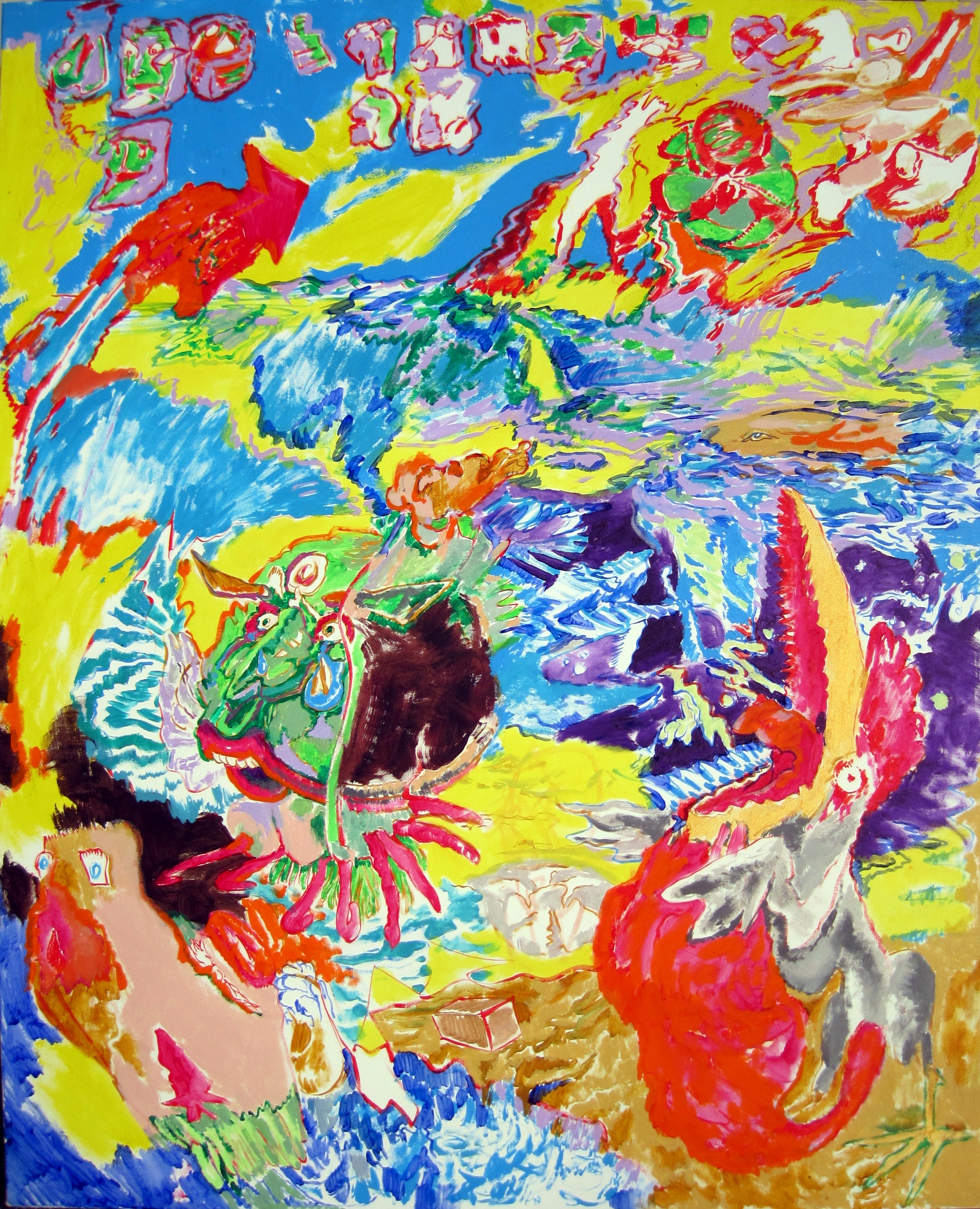 These paintings are influenced by a decade of socializing with graffity artist and expressionist painters in Puerto Rico Santurce Art scene. I began reading Kandisnky's theories and his inner necessity concept.