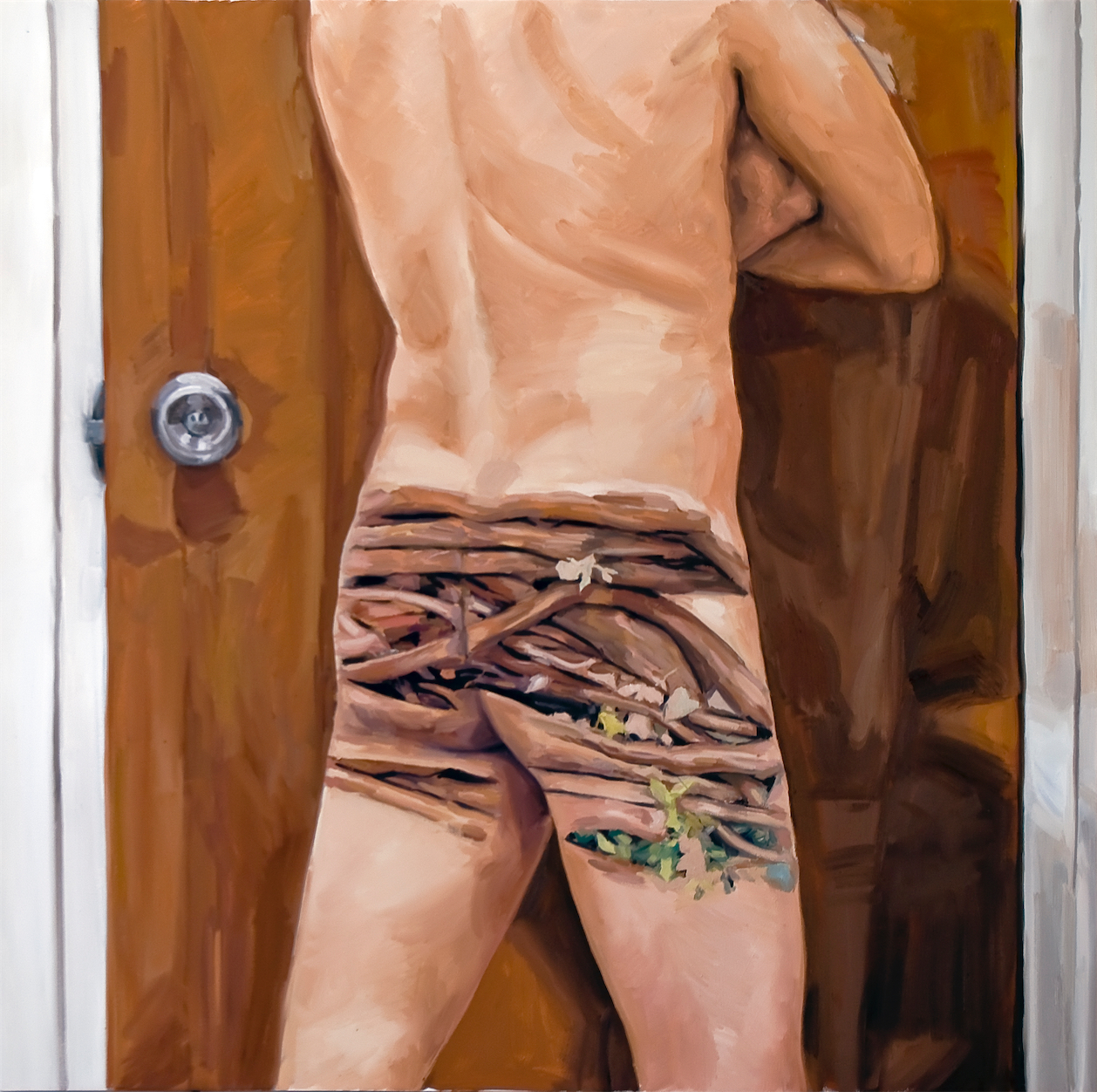 These paintings were created after Ringling College when I settled back into San Juan Puerto Rico after European Museum travel tour. The design desicion where motivated by Rene Magritte and Robert Gober. I wanted them to resemble installation sculptures, but stick to oil painting format. At the time I was training Yoga and was influenced by it's sculptural postures as seen from interiors.