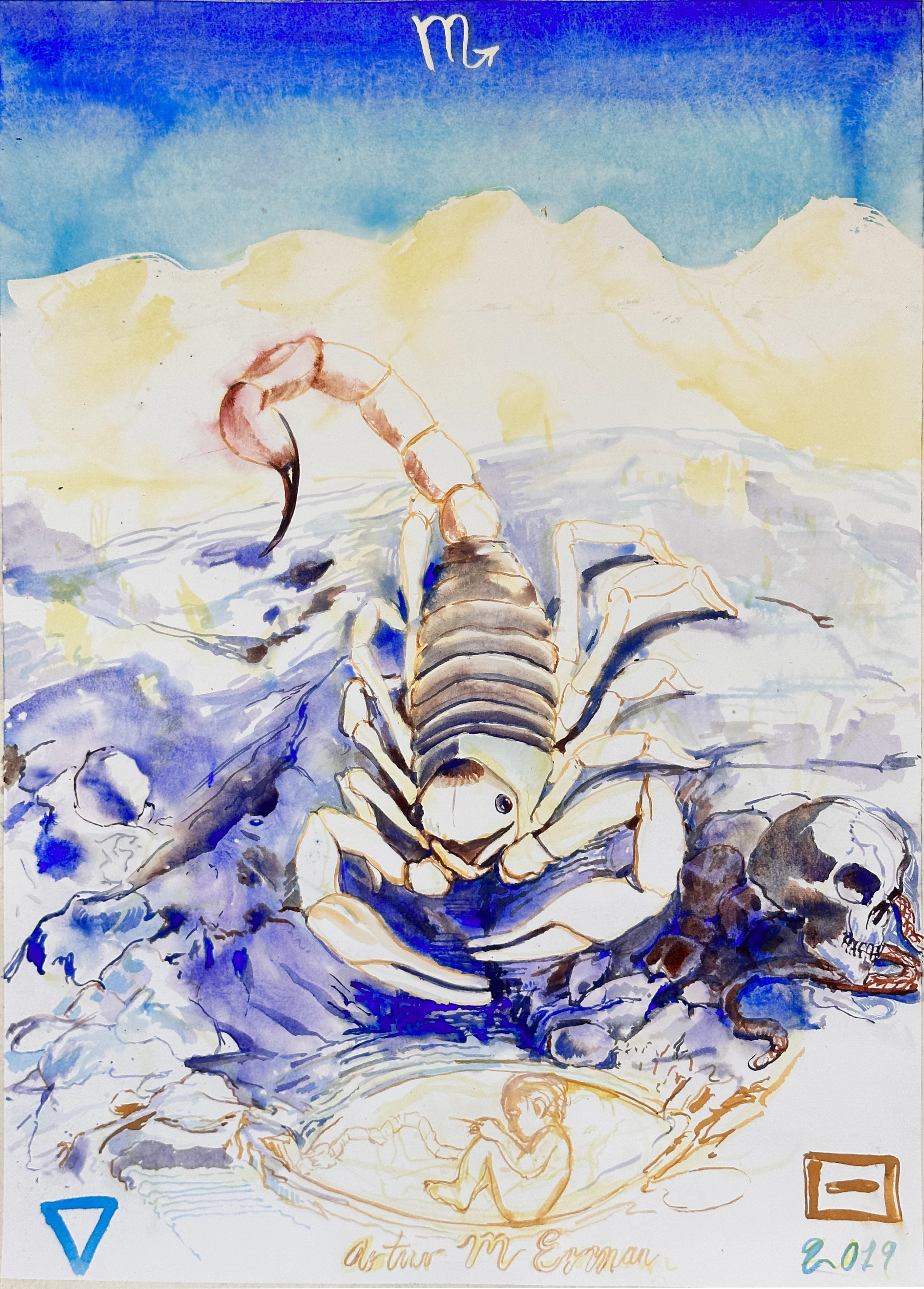 Scorpio, watercolor on paper, 22" x 30"/55.88cm x 76.2cm